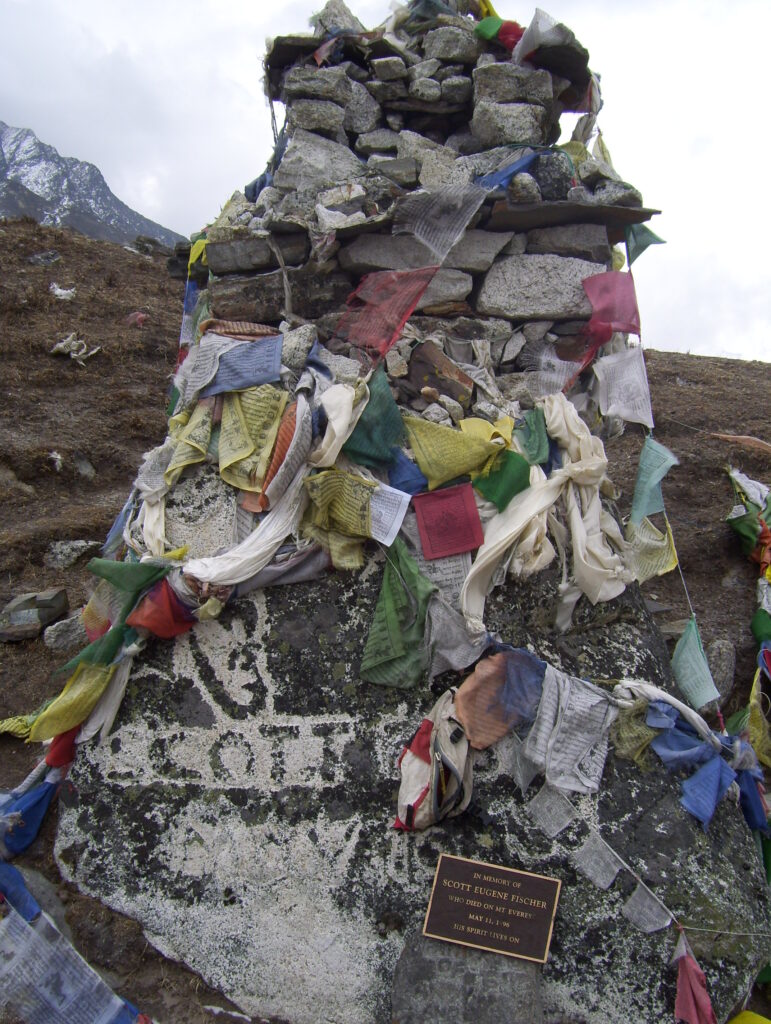 Below is a photograph I took of the memorial to Scott Fischer, one of the leaders of a climbing expedition that died in the disaster. Like many climbers who have died on Everest, his body still remains on the mountain.